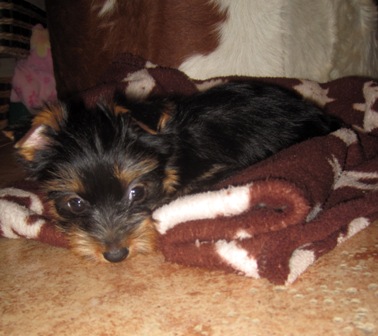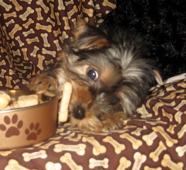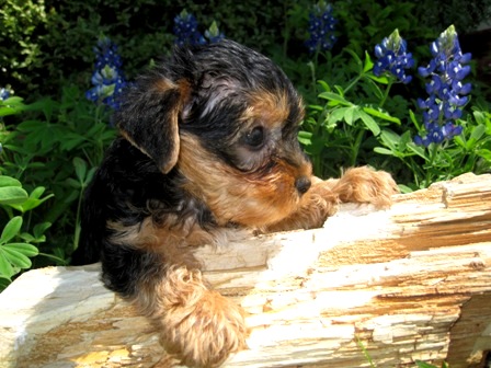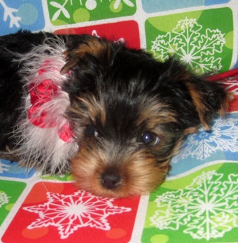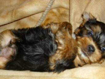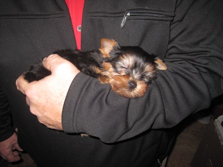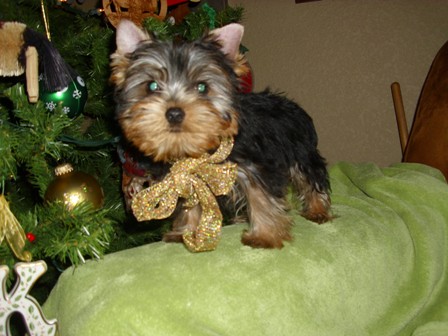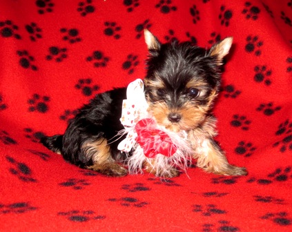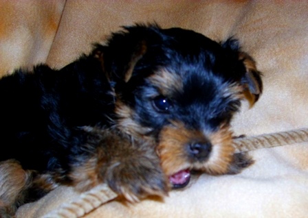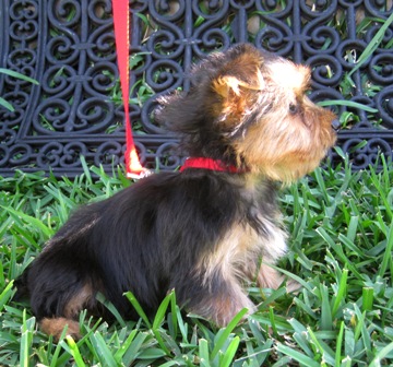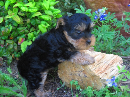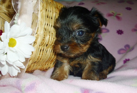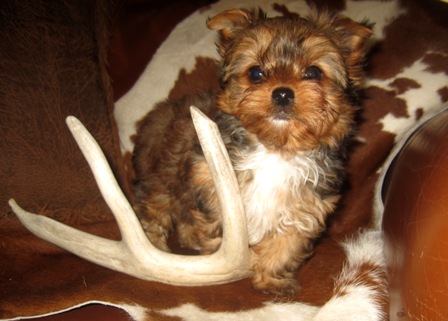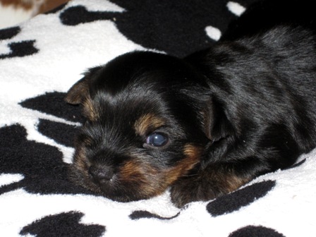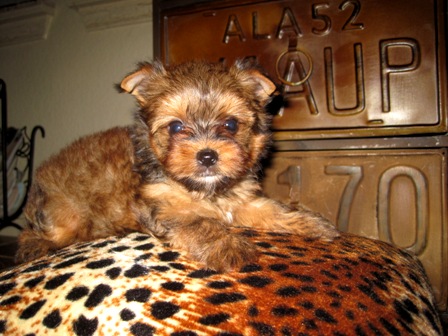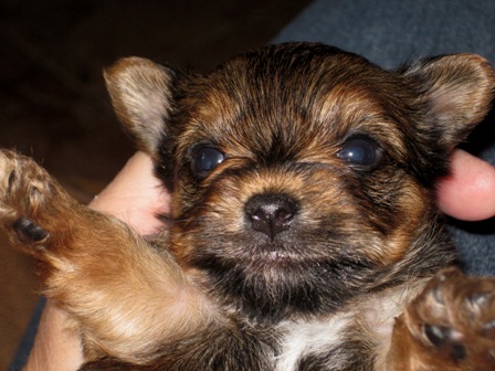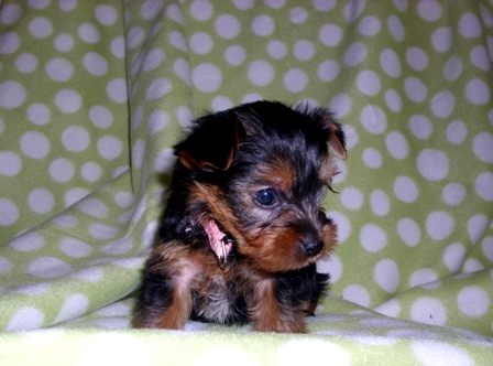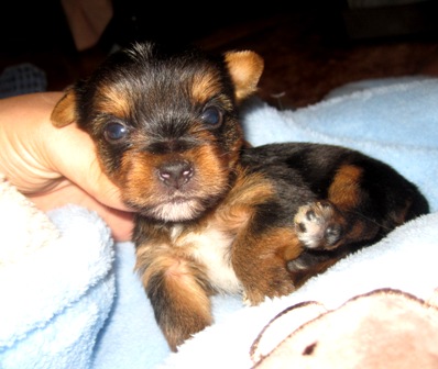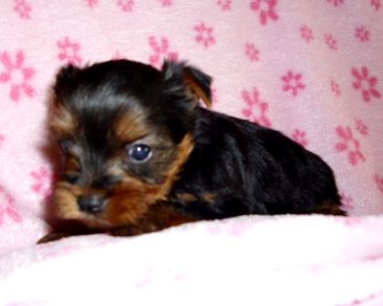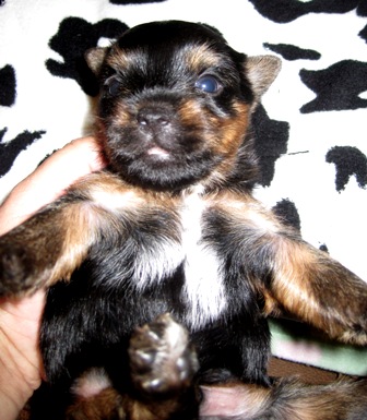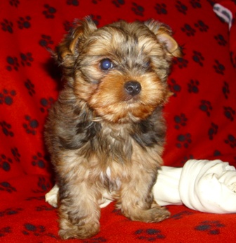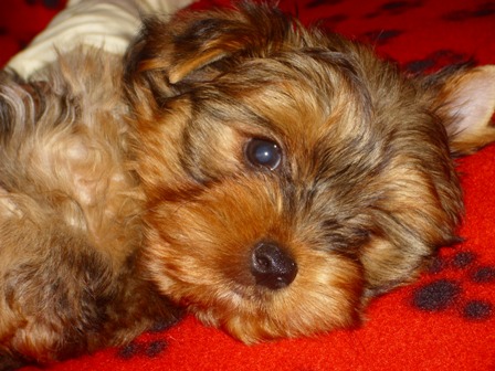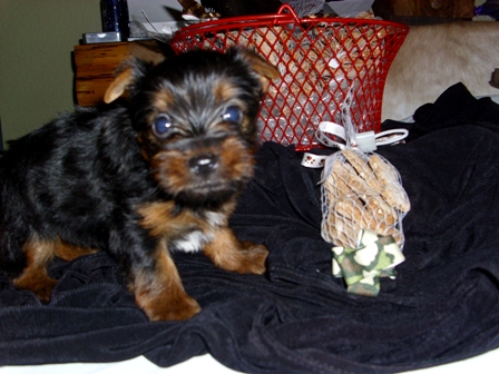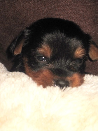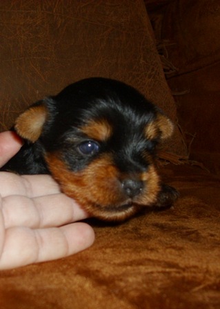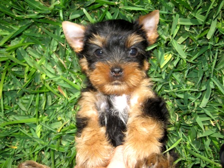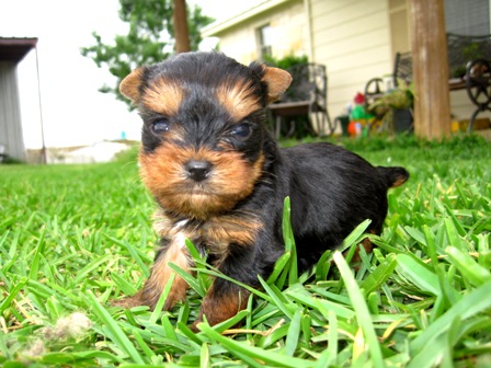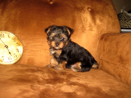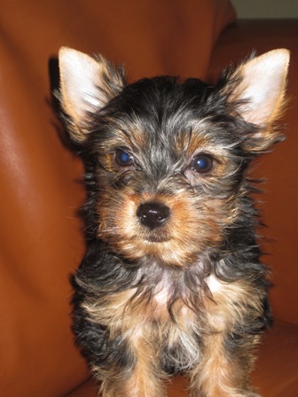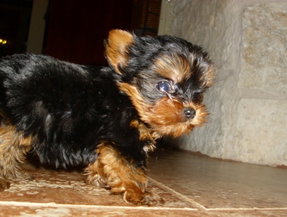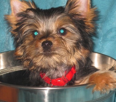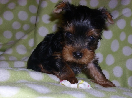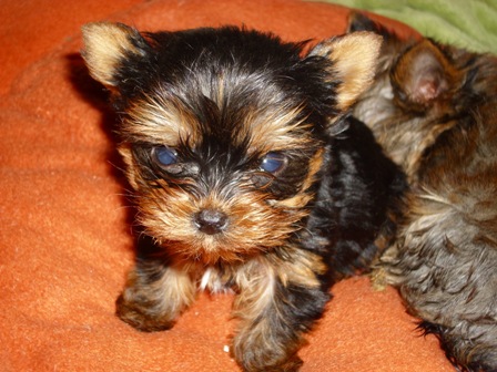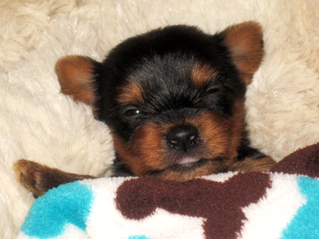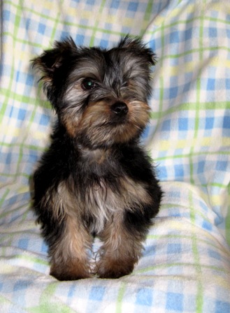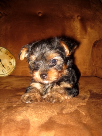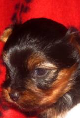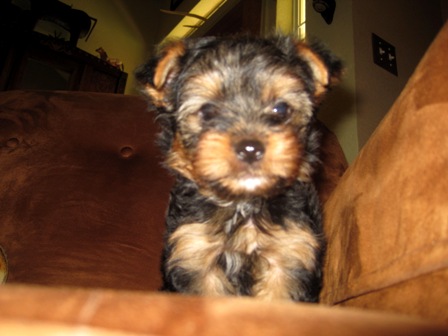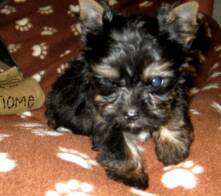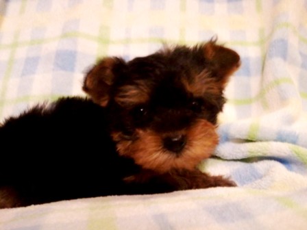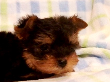 He is so handsome! His little face and bosy look perfect! I love the rich amber color on his face! He will be a beautiful yorkie.