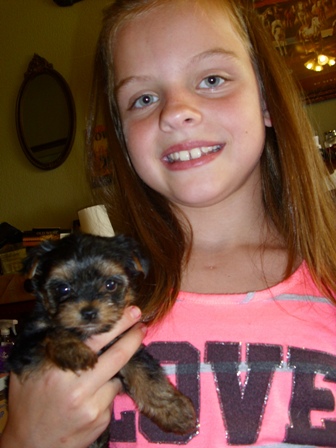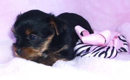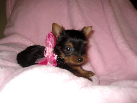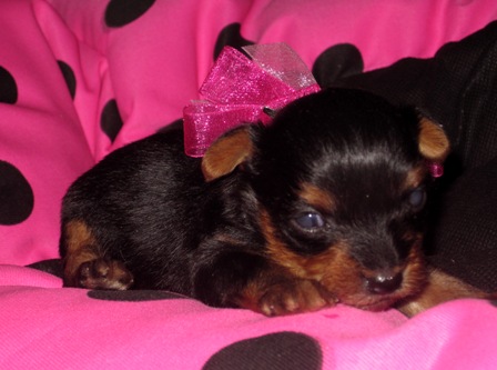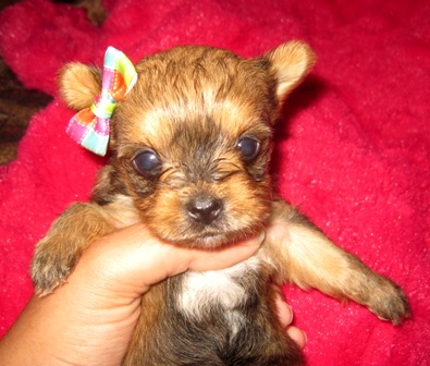This female is the smallest in the litter. She has a baby doll gace and is adorable. Just a little toy! You will love her!