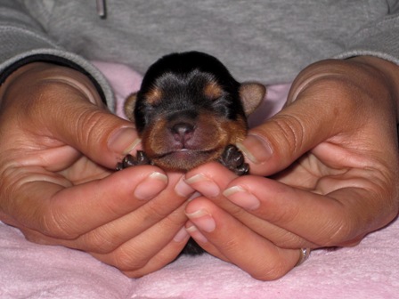 He is and adorable teacup male. His birth weight was 77 grams which is around 2 oz. He the perfect little man! Look at his tiny face and nose.