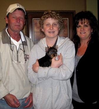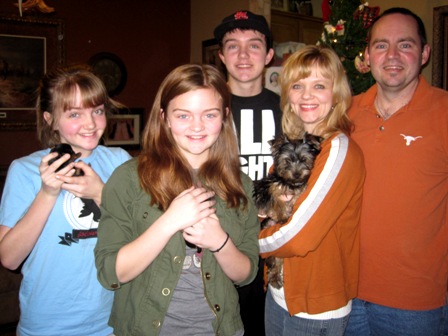 This is the Bayer family. Mark, Pam, Jackson, Addie and Ashlyn were excited to get a new puppy for the New Year! They are big UT fans as dad is attending the University for his PhD! Wow!