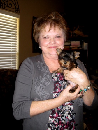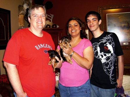 These two puppies went to Don, Ann and Nick in Colorado. Nick is so sweet that he gave Kaleigh lots of presents when we arrived in Denver and Kaleigh knitted Nick this neck scarf. I hope they stay great pen pals in the years to come!