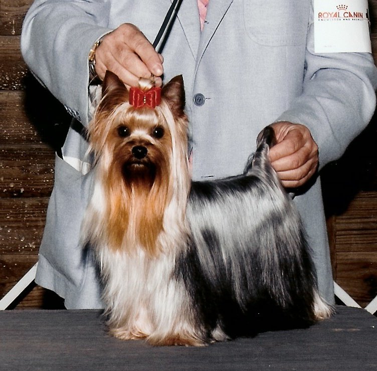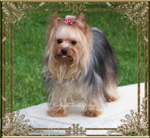 This male is a real eye catcher. He is a dark gold sable out of a traditional colored yorkie dam and a golden parti sire. His coat is super thick and he is as sweet as can be. He would be great with children.