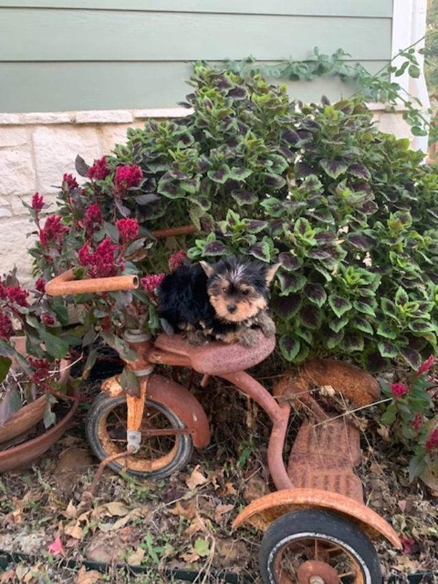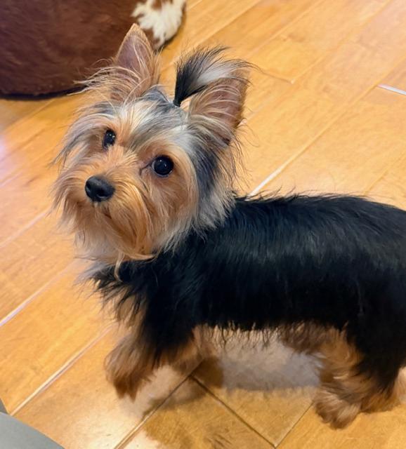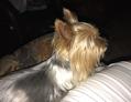 He is so shiny and soft. A lap dog anyone? Yorkies are the best companions. If you've never owned a yorkie you will be hooked for life. Small dog with big dog spirit!