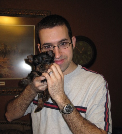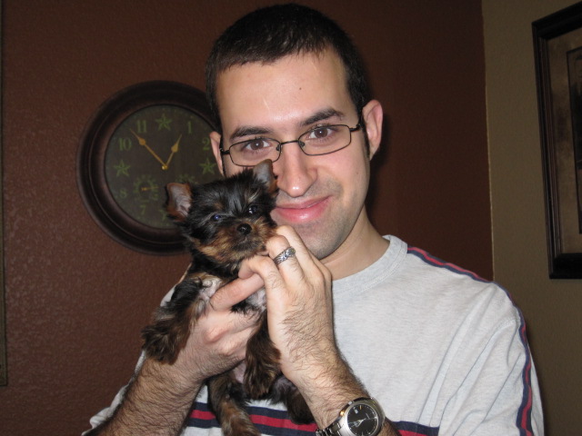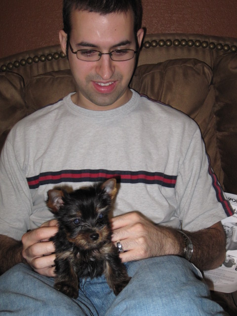Steve Madureira bought this little teacup male for his fiance, Leisel. Wow, what a sweetheart...and the pup ain't bad either!
