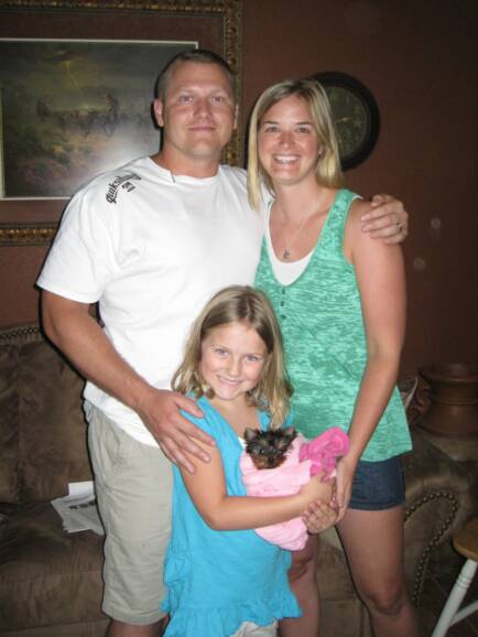 Ryan, Alison and Kloey are going to give this little yorkie tons of love and attention.