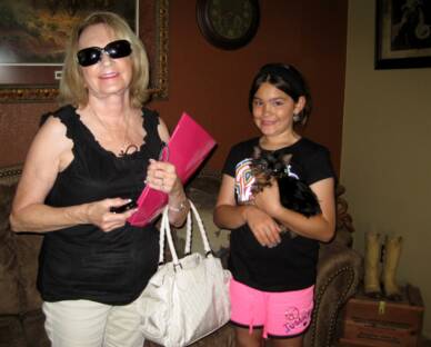 Carole Woods from Spicewood, Texas adopted our adorable teacup yorkie. We called this baby "Kit" but can't wait to find out her new AKC name. Carole's husband, Dr. James Woods, DVM was our veterinarian when we moved to Austin in 1975. It was a pure coincidence she found us.