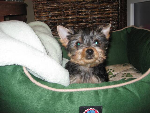 Betty and Frank Carter own the sire and dam of this litter. They are excellent AKC Yorkie breeders. Pocketbookpups purchased a stud "Salty Dogs Skeeter" from them a few years ago and we have been so happy with the quality of the pups they raise.