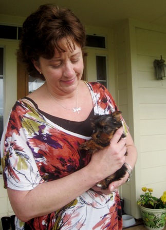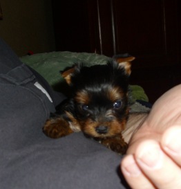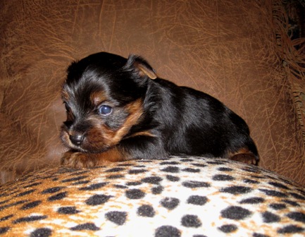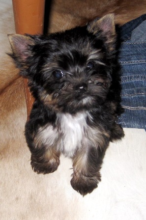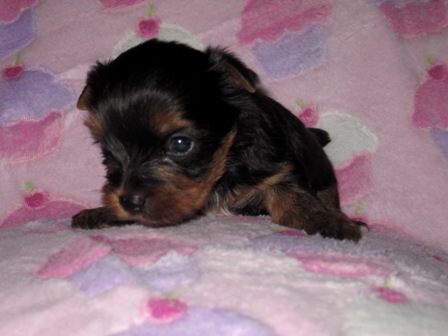 This little girl is super tiny. Her face is small and very rich in color. She has white on her chest and feet...probably a party carrier.