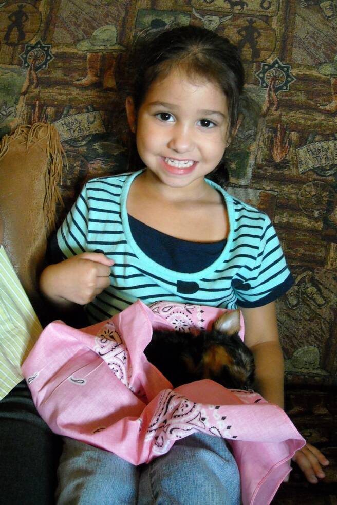 Kayla was so sweet and gentle with her new puppy. Little "Mia" fell fast asleep in her arms.