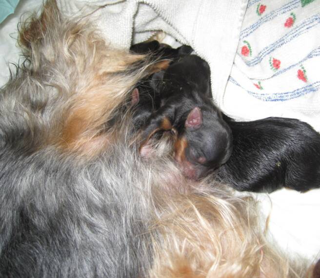 Honey is a great mom! The pups were born within 30 minutes from each other and they are all doing great.