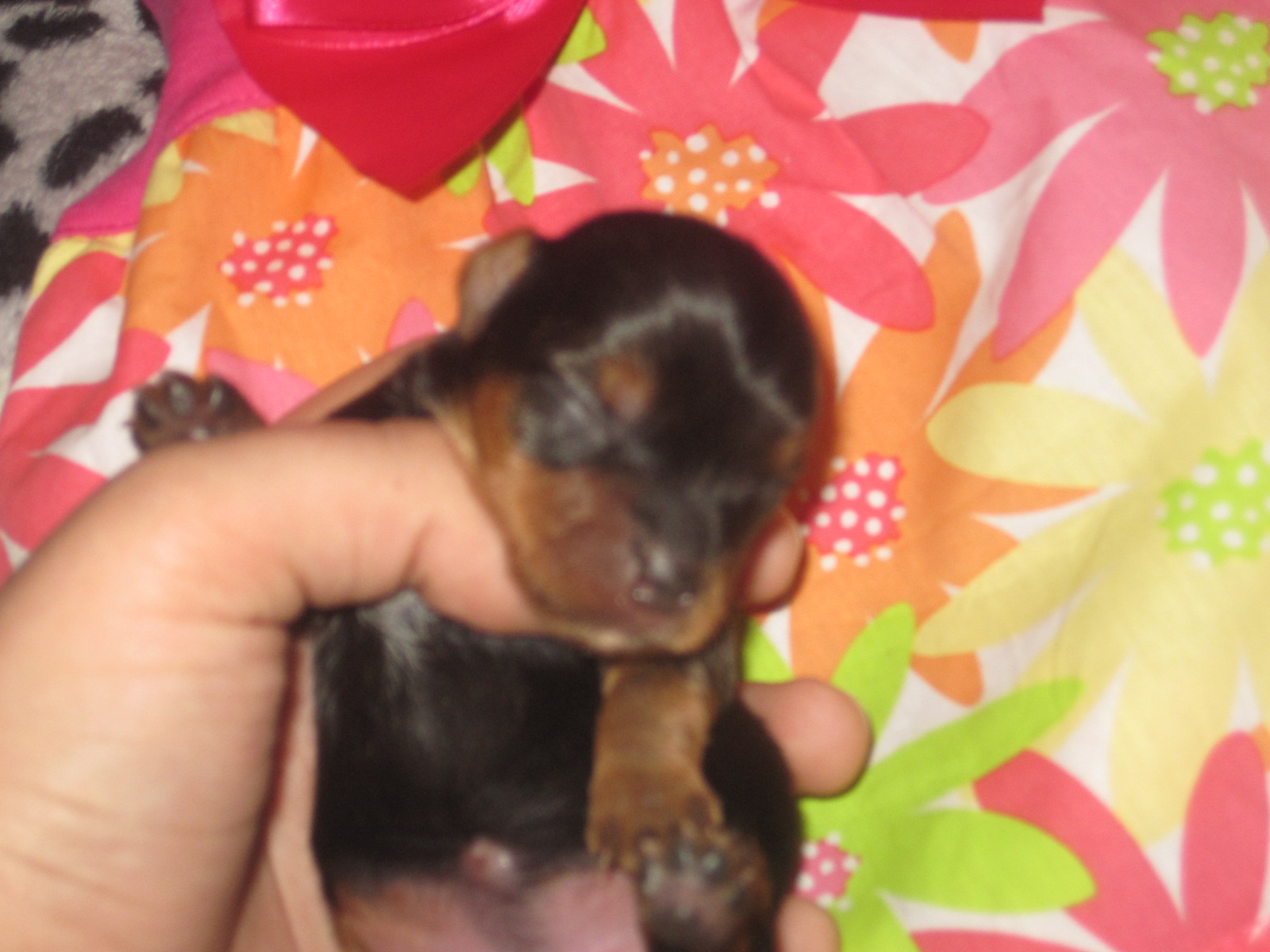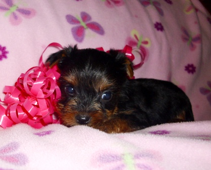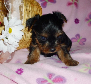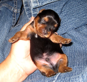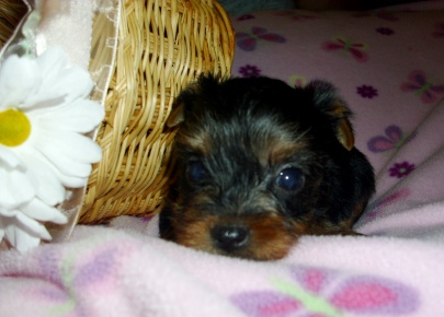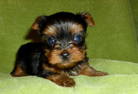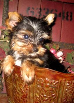 The is a great looking male...hopefully takes after his grandsire "Fritz in Your Pocket"! He was my very first yorkie and was a great stud. Pocket had a gold head and his gold was not intermingled with the black....a desirable AKC quality.