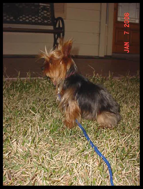 Pocket started it all. He was my first Yorkie. Talk about attitude! He jumped on the fireplace hearth and said, "This is MY house!" He was such a cute puppy that we were hooked on the breed; and that's how we came up with the name Pocketbook Pups. They don't all fit in your pocket but they sure fit in your heart.
