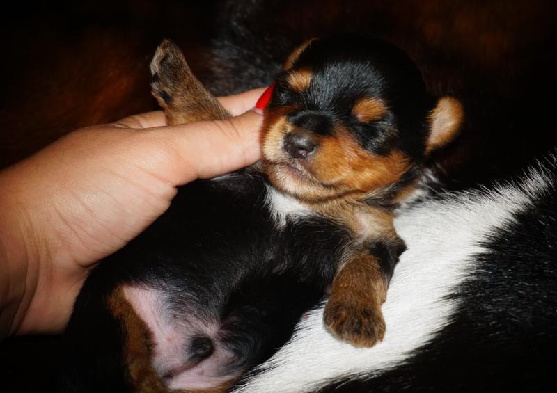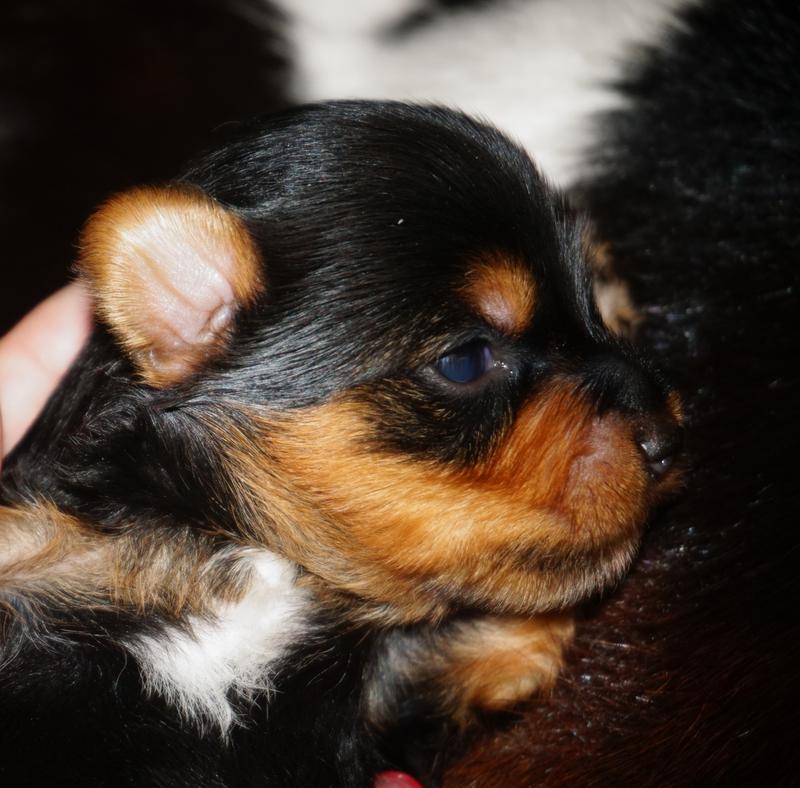 This boy is the smallest. His muzzle looks short to me which will be so cute. He has beautiful coloring around her face, ears and legs. Totally traditional in color. I think he will make a great stud or perfect little boy for some caring family.