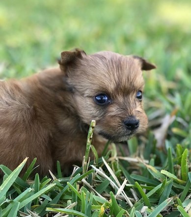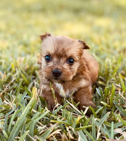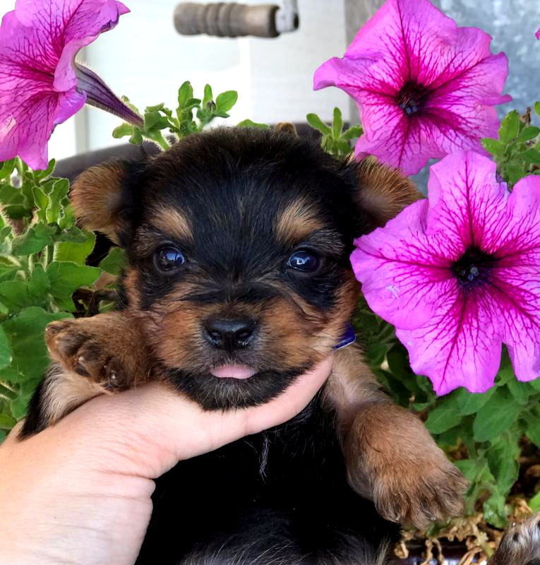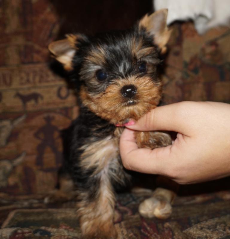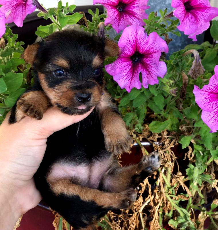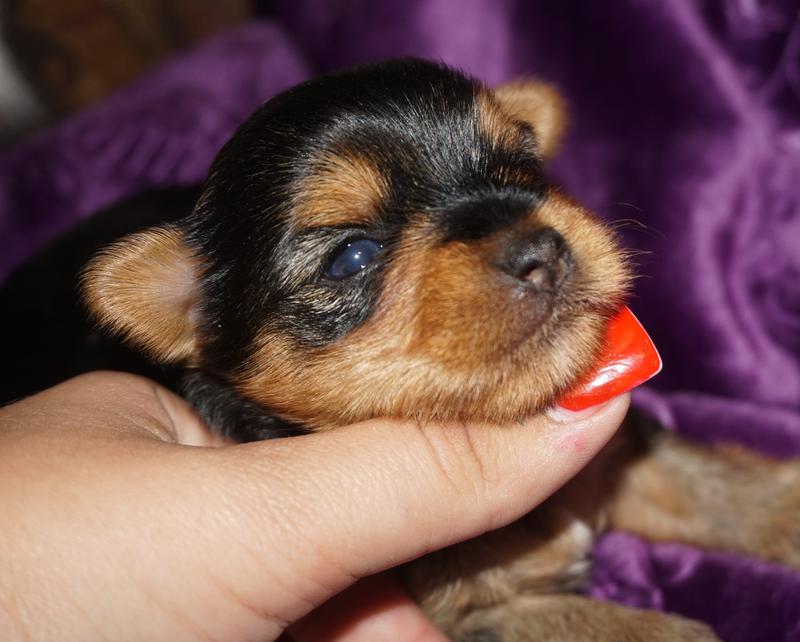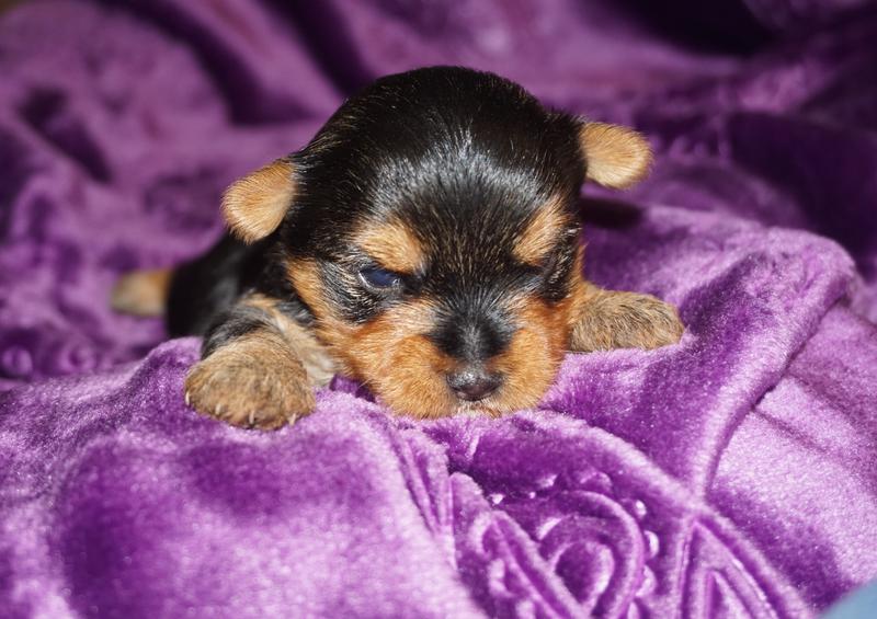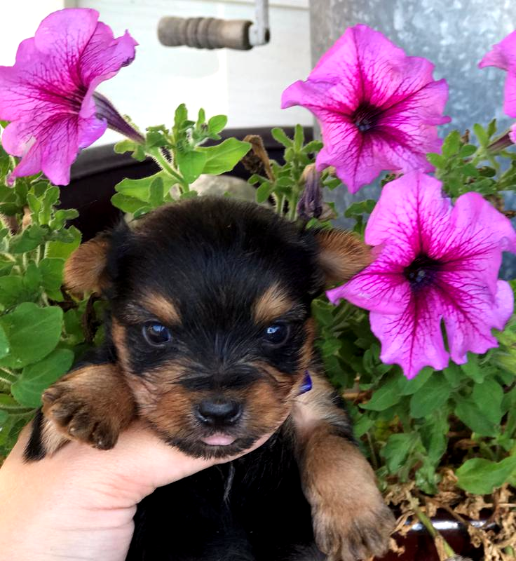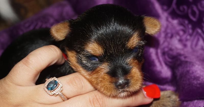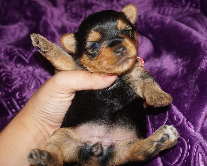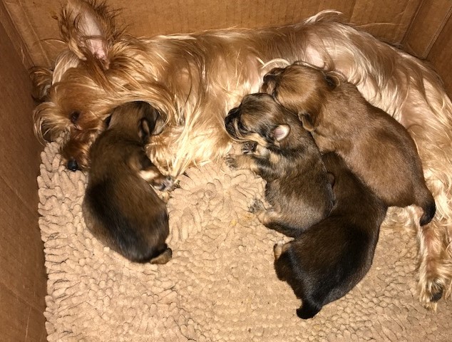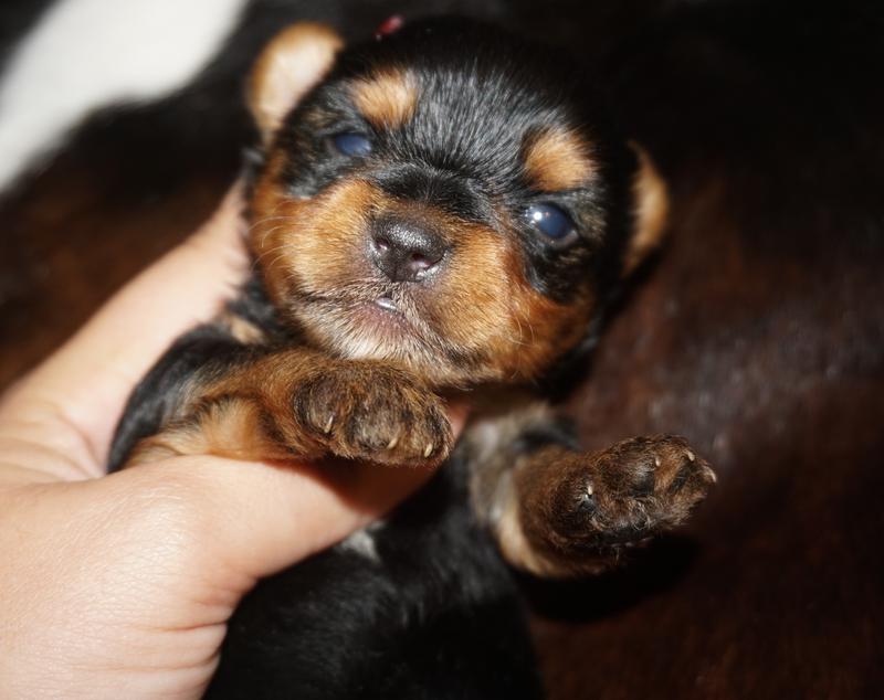 His ears will go up as both parents have ears that stand. He is very gold on the face and legs will be a classic Yorkie style! Beautiful eyes and nose!