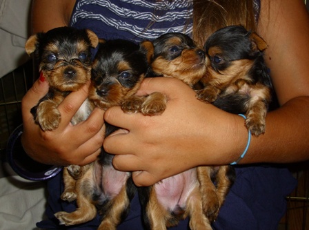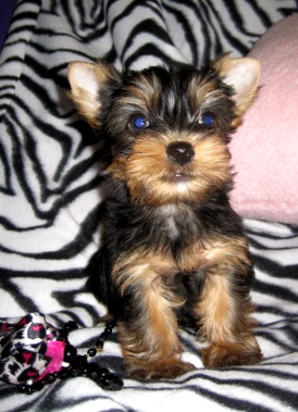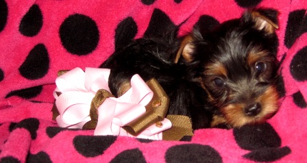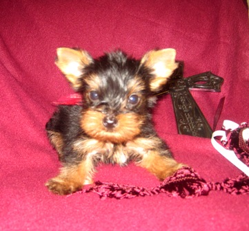 Health comes first – Many buyers want teacup Yorkie puppies.  We are a Yorkie breeder, who raise the tiny darlings with the baby doll faces.  We pride ourselves in feeding the very best food and vitamins to our sires and dams.  Just remember they come in all shapes and sizes...even within the same litter.  As Forest Gump says, “You never know what you’re going to get in a box of chocolates,” and this is so true.   As an AKC Yorkie breeder we sell healthy pups that will fit in your pocket to the standard size Yorkie puppy.