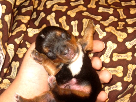 This female is the smallest in the litter only by 1 oz.  There are three that are very close in size and appearance.  Emma named this puppy "ZOE".  What an awesome trio!
