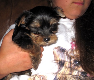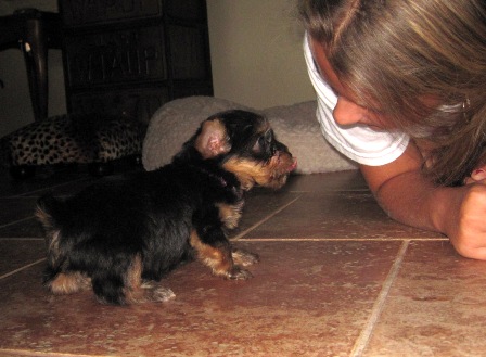 Socialization - This is my full-time job.  As you will see on our website, we are hands on from the first breath the puppies take.  We take pictures of the labor, delivery, first nursing session, and each week of life until they are transferred into your loving home.  My daughter, Kaleigh, is 10 years old and our house veterinarian in training.  She helps me in every aspect of taking care of the Yorkie puppies.  Best of all, she is hands-on when it comes to socializing the puppies. This makes all the difference in a puppy that is outgoing, playful, and kissable.  It also prevents you from buying a small yapping dog that could end up being a lot of trouble instead of a blessing to your life.