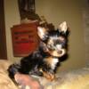 This is a beautiful male.  He will be closer to a standard yorkie.  Very attentive with a great gold face and super healthy.  He will have a great beard.